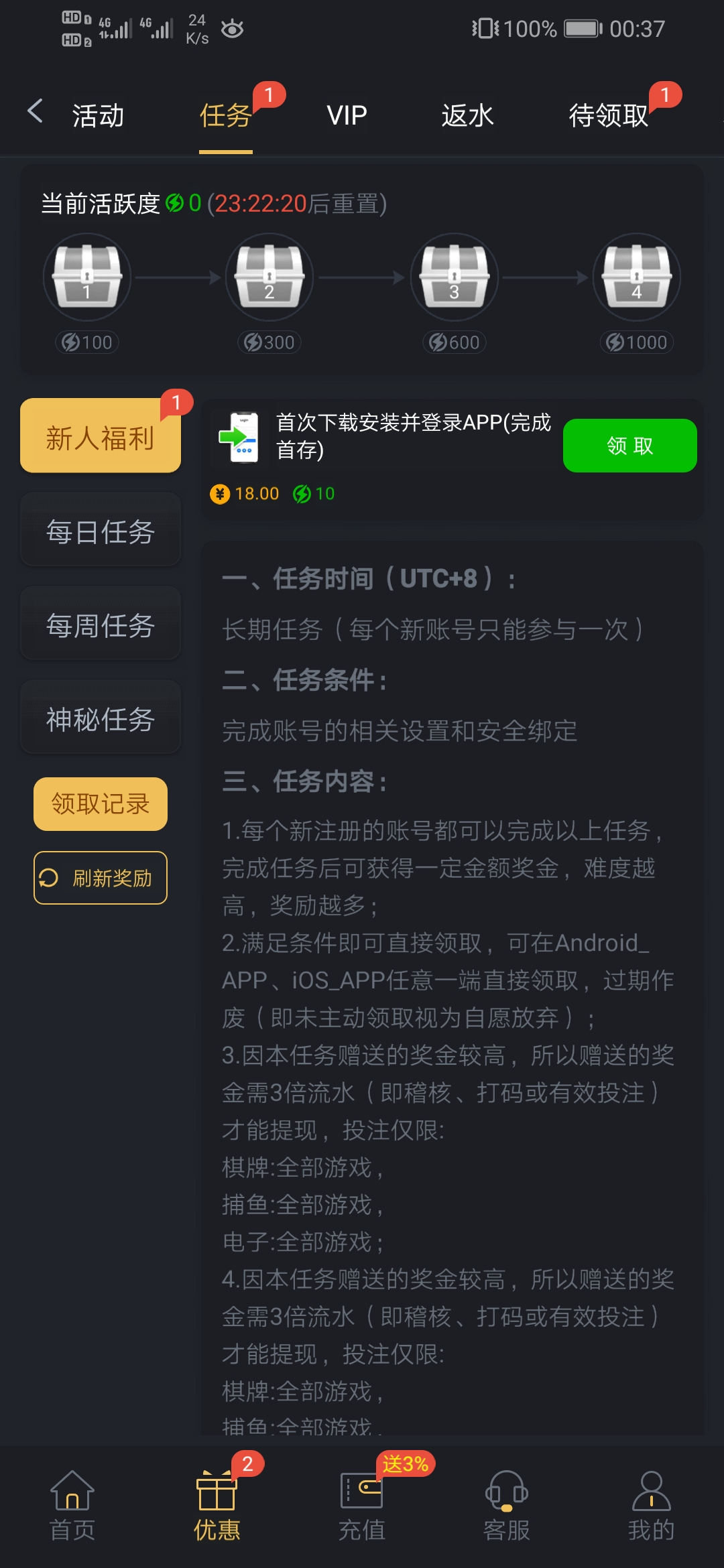 下载APP   优惠→任务→自助领取