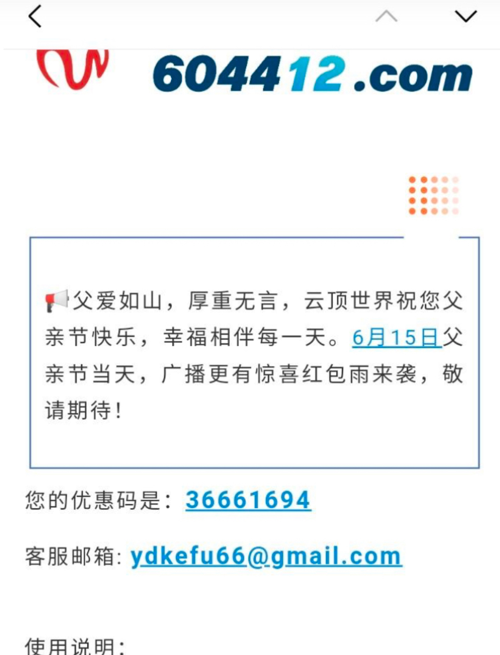 收到云顶父亲节优惠码6.66