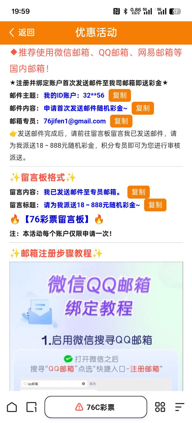 【76C彩票】—✅— 邮箱彩金