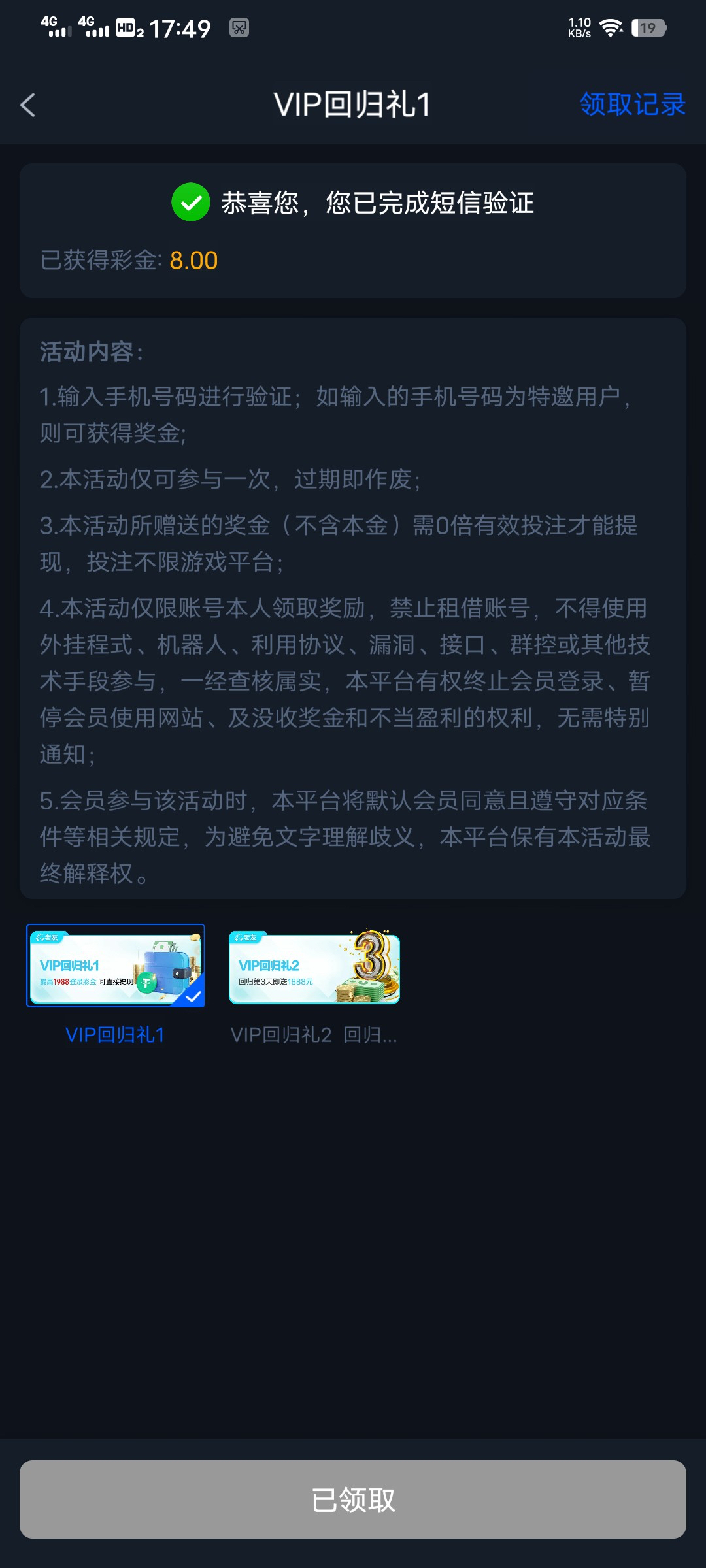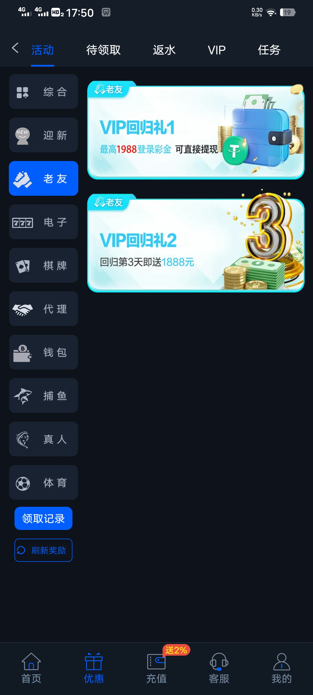 老友回归验证彩金 很久不登录和充值的试试