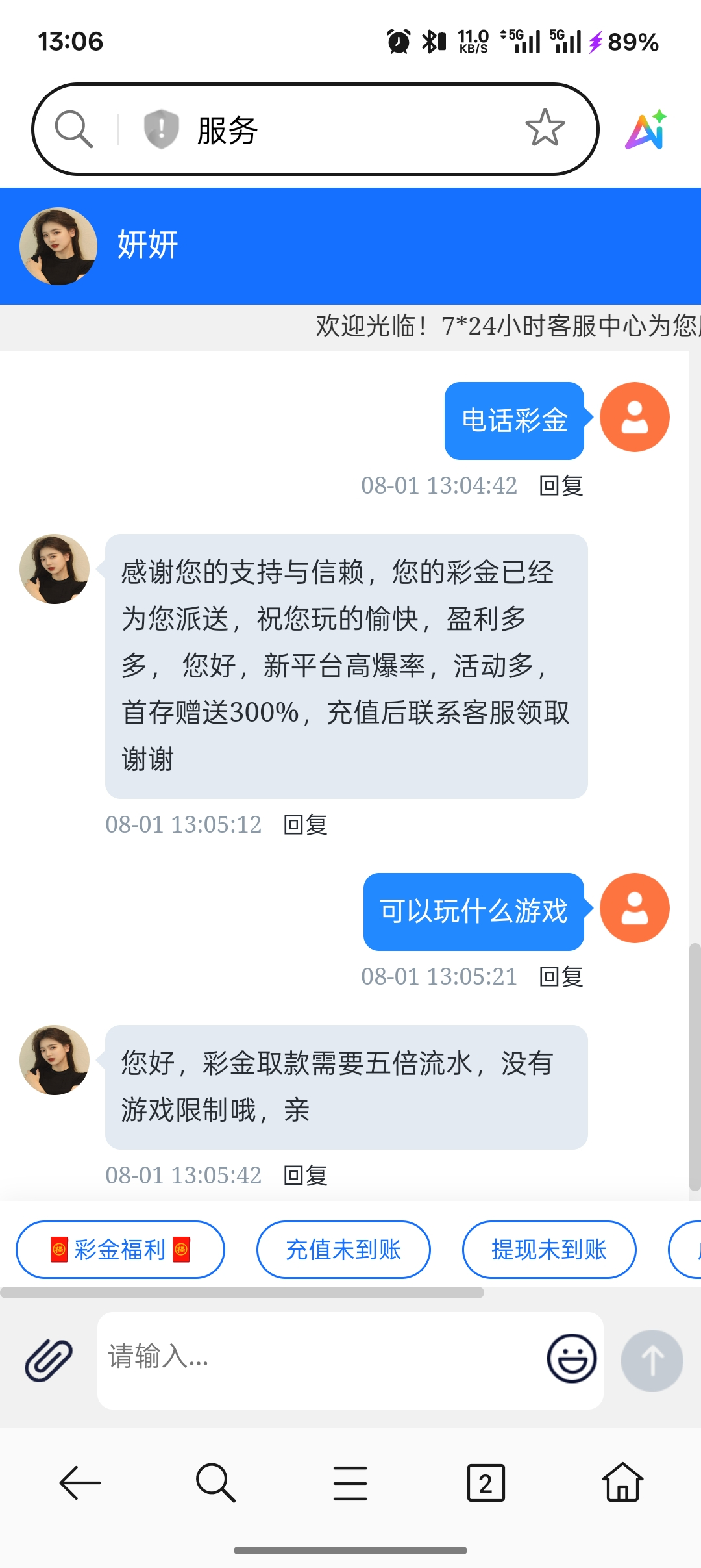 8月1号接到电话,联系在线客服送了38彩金