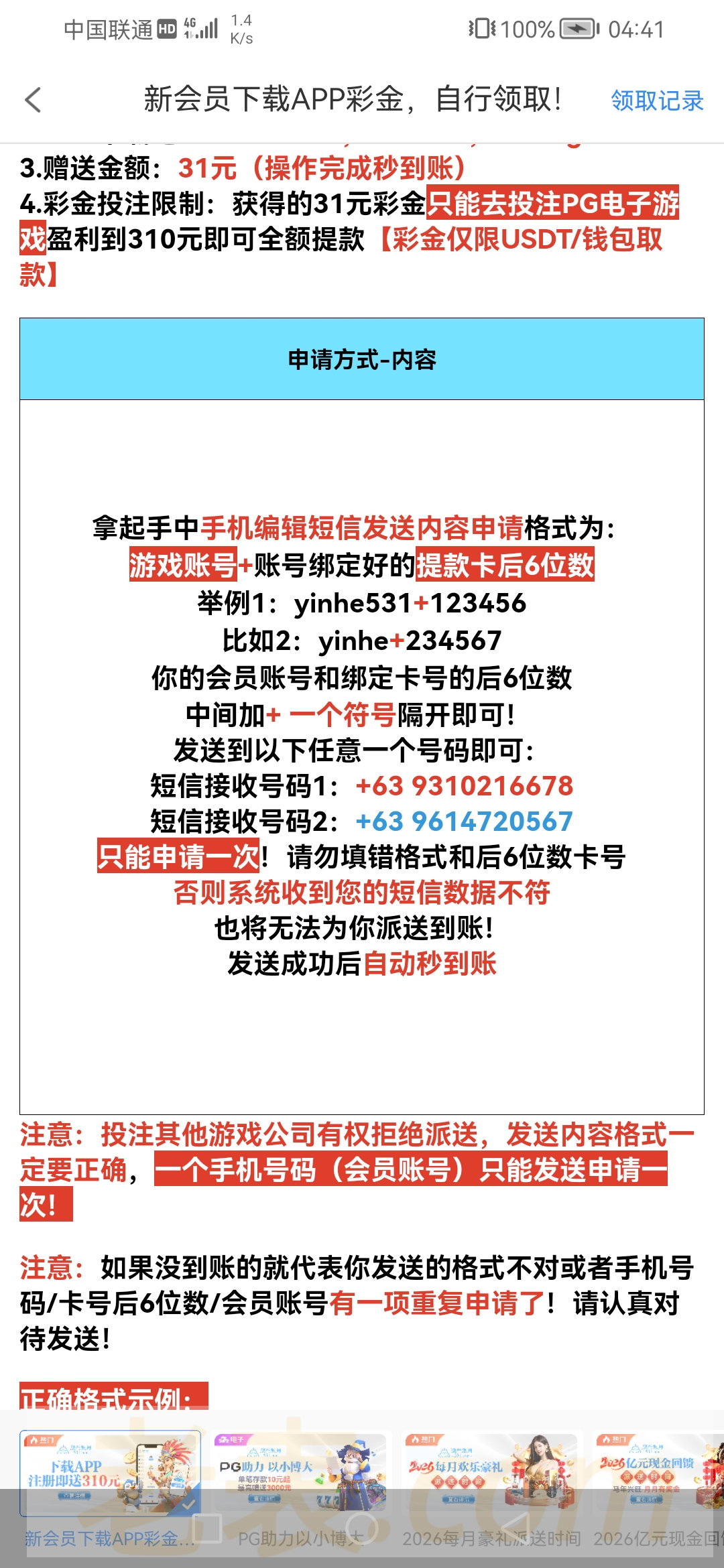 到账情况:自测(严禁充值